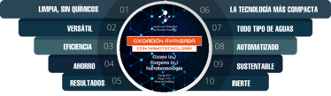 It is a water purification process that combines ozone (O₃), oxygen (O₂), and nanotechnology to oxidize contaminants that are normally very difficult to remove, such as: